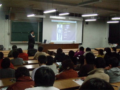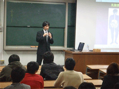 「乳酸菌・発酵乳の機能研究と製品開発」についての講義において、これらが腸内細菌相の改善と維持において果たす役割、胃炎の原因となっているピロリ菌に対する排除効果など機能に付いての解説があり、これらを利用した製品開発における安全性試験、バイオアッセイ、人に対する投与試験などの重要性などについての講義が行われた。これらの内容は、受講学生に対して、本教育プログラムにおいて研究開発における実践性と研究の展開力の必要性を理解させるなどの教育効果があった。