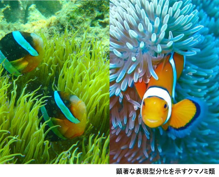 一般に海洋は地形的な閉鎖性に乏しく、典型的な異所的隔離によってのみで莫大な多様性が生み出されたとは考えられません。特に、種多様性がきわめて高い熱帯や温帯域の浅海域においては、多様なニッチの存在により駆動される生態的種分化が主要な機構である可能性があります。クマノミ類は、イソギンチャクと共生で非常に有名な魚類ですが、クマノミ類の種多様化はイソギンチャクへの共生能の進化によって駆動された適応放散によって生じたことが示唆されています。また、温帯域に生息するメバルには3種存在(アカメバル、シロメバル、クロメバル)することが近年判明し、分類学的にも命名されていますが、この3種は進化的に非常に若い種であること、生息場所ニッチの違いが存在することが示唆されています。したがって、これらのモデル系の特徴は浅海域における種多様化機構の理解に大きく役立つものと考えられます。現在、このような文脈で、クマノミ類の適応放散を駆動する表現型多様化の進化遺伝基盤やメバル3種の種分化ゲノミクスに関する研究を進めています。