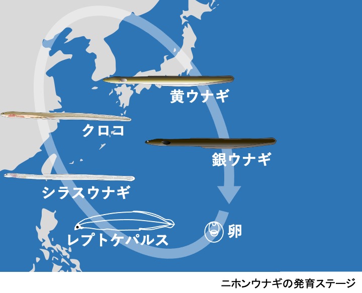 私たちの研究グループでは、かば焼でおなじみのニホンウナギを対象としています。河川・沿岸域における生態調査を通して、人為的環境改変による本種への影響の解明や、保全方策の効果検証を進めています。