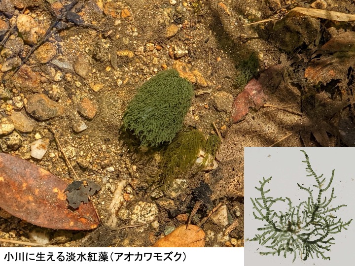 褐藻、紅藻、アオサ藻に代表される大型藻類の多くは海域で多様化したのに対し、淡水に進出したのはごく一部の分類群に限られています。紅藻類ではチスジノリ目やカワモズク目、車軸藻ではシャジクモ目が多様化に成功したグループですが、これらの多くは生育環境の劣化に伴い生育地の減少が続いており、近い将来の種の絶滅が危惧されるものも少なくないのが現状です。一方、淡水紅藻の記載分類学的研究は、熊野茂博士によりやりつくされた感がありましたが、近年の欧米研究者らを中心とした網羅的な分子系統学的研究の成果として、分類体系の大幅な改定が進行中です。我々も国内の研究者らと協力し、国産淡水紅藻の種分類の見直しを行っています。