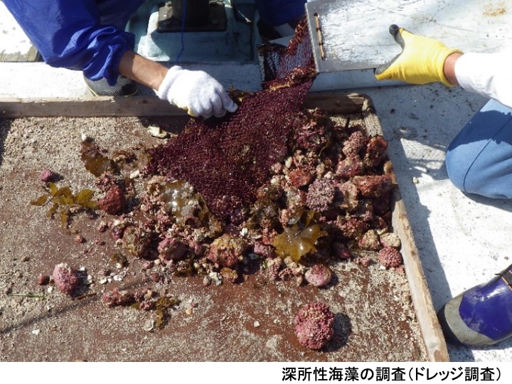 地球規模の環境変動は生物の生息環境・生存に大きな影を落としています。海水温の上昇による藻場の衰退・分布縮小、海藻相の種組成の変化、あるいは分布域の変化(北上)など様々な変化をもたらしています。長期的なモニタリングの必要性が高まっていますが、その多くは一般的なスキューバ潜水技術で到達可能な水深帯が研究対象とされます。その分、深所性海藻の種多様性研究は後れをとっています。藻類にとって、低光量である深所は透明度の低下の影響をうけるシビアな環境であるは反面、表層ほど水温変動の影響を受けにくい安定的な環境と言えるかもしれません。現在は、アオサ科を使って光合成色素組成の観点から明暗異なる光環境への生理学的機構について、クロシオメを材料に本種の分布特性とコンブ目内における系統進化について研究を行っています。