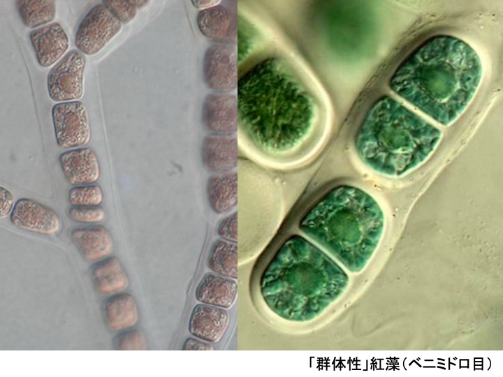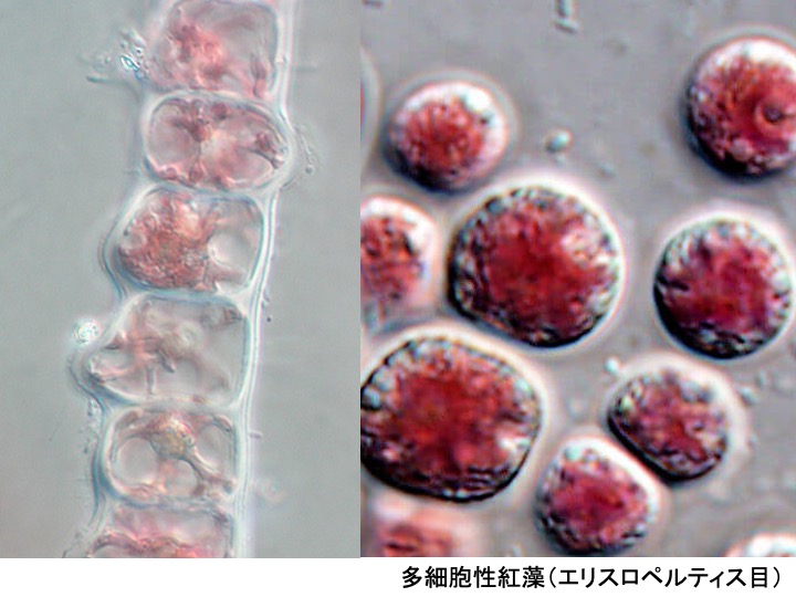 個人的な興味で地道に進めている研究です。多細胞性の藻類なので「大型」藻類に分類されますが、いわゆる肉眼的なサイズのものではなく、顕微鏡サイズの海産、淡水産藻類の記載分類学を行っています。岩やコンクリート、コケ類などに着生したり、他の大型藻類に内生したりと普段人目につかず、それ故に未記載種であったりするものを探しています。環境DNAやメタバーコーディングによる種多様性研究も近年は盛んですが、やはり実体を知りたいじゃないですか。形態観察と分子系統解析を行うためにも、粗培養と単離を繰り返して培養株を確立することが何より重要です。