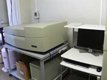 ![]() タンパク質への糖鎖付加の解析に用いているMALDI-TOF MSです。この機器は、農学部5号館に設置しており、現在は休業中です。 ![]() 倒立型の全自動落射蛍光顕微鏡で、XYZの3次元の位置の自動制御が可能です。また、DSUユニットを 付けているので、フレアの無いシャープな像が得られます。この機器も農学部5号館に設置しています。 ![]() 蛍光イメージアナライザーTyphoon です。電気泳動で分離した蛍光タンパク質や、蛍光2次抗体を用いた免疫ブロッテイング等のシグナル検出に使っています。 |