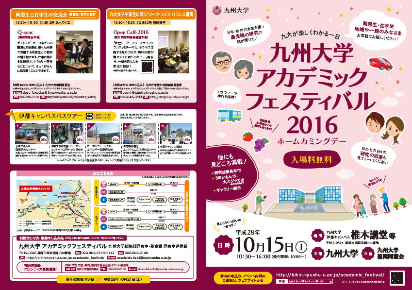立花宏文教授がミニ講義に参加する「九州大学アカデミックフェスティバル2016」が九州大学伊都キャンパスにて開催されます。詳しくはこちらから。