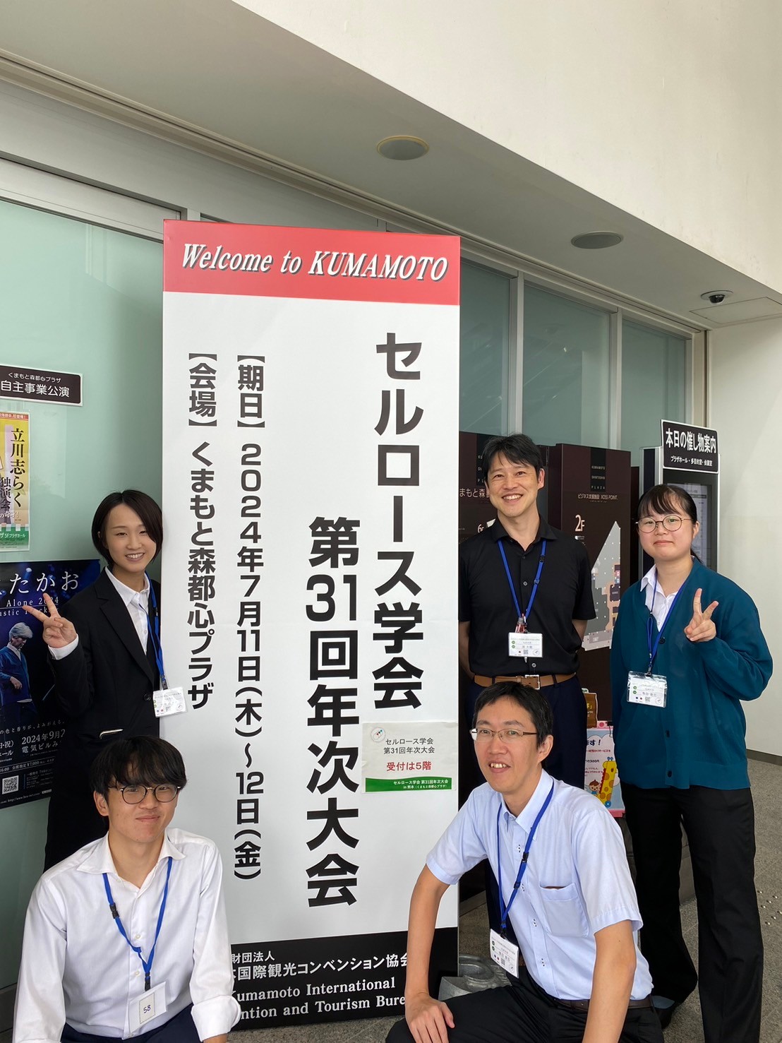 両研究室の修士1年生が、6月末に開催される化学関連学会支部合同九州大会の反省を踏まえ、挑戦するセルロース学会。セルロースを専門とする大学関係者や企業が参加するため、発表も興味をひくものが多く、かつ、発表に対する質問も鋭く、かつためになるものが多くありました。