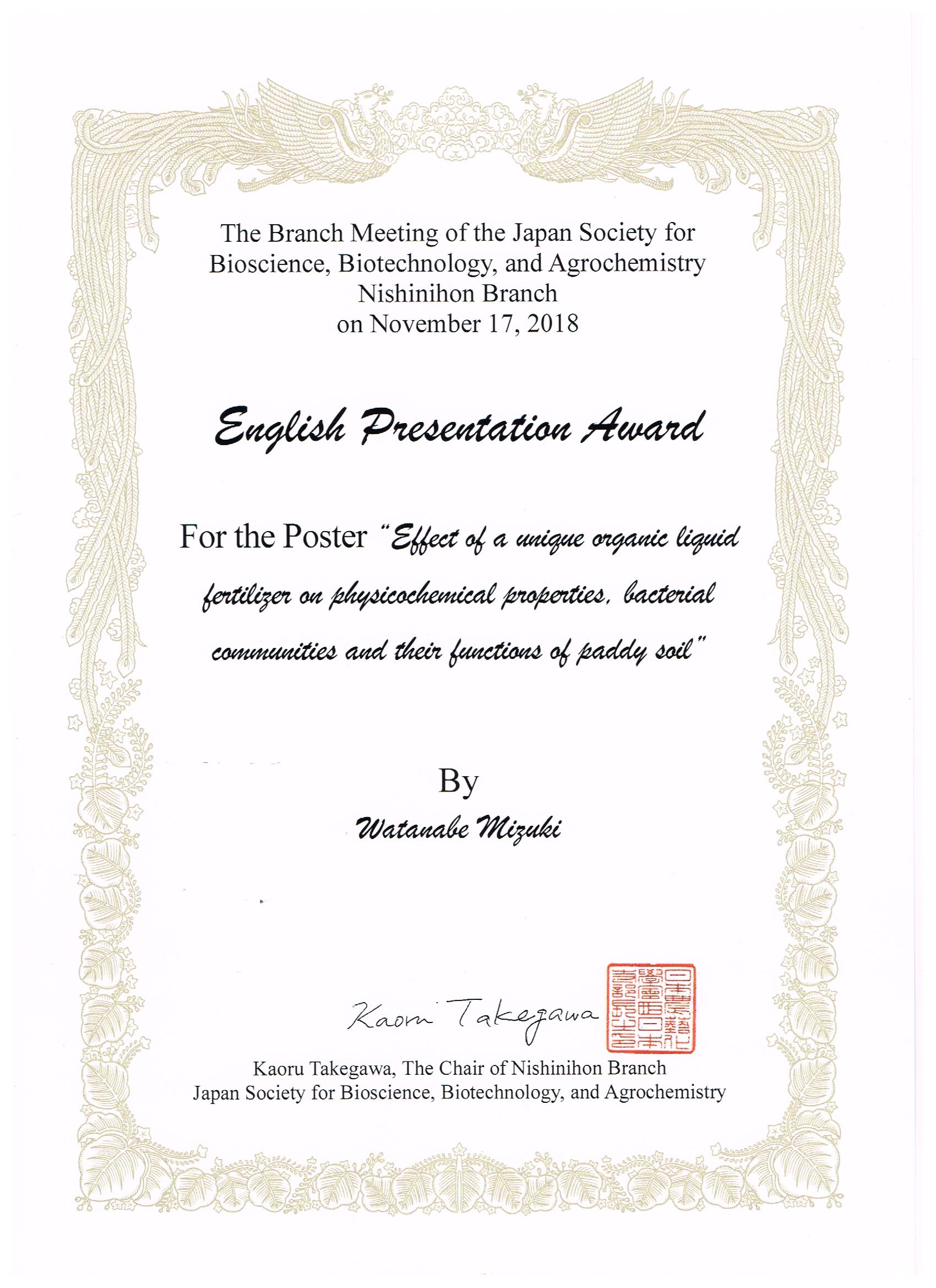 EJSBBA WEST 3rd Student Forum Excellent poster awardiYuri Nishij