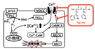 (低分子ペプチドTrp-Hisは血管平滑筋細胞において、L型Ca2+チャンネル阻害作用とCaMキナーゼII 阻害作用を有する)
