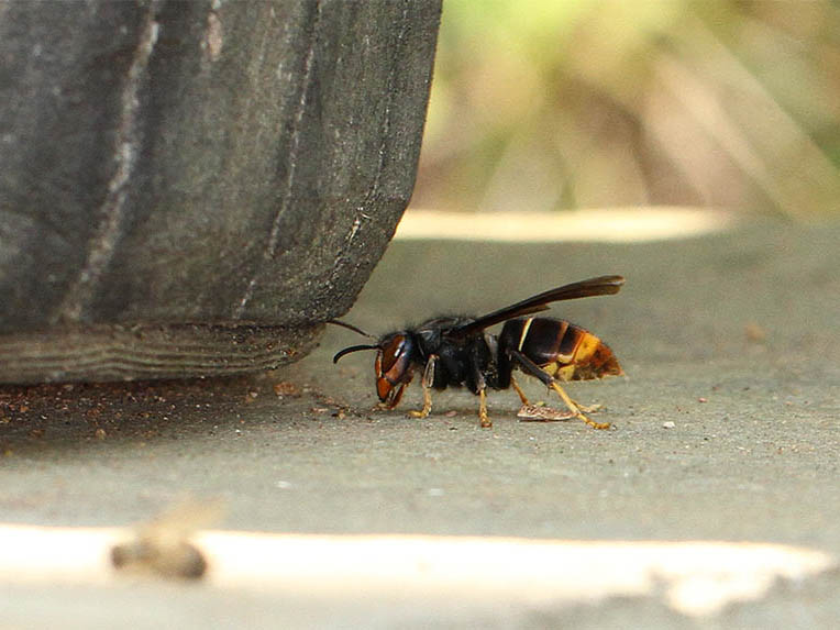 1例だけですが、ツマアカスズメバチの女王がニホンミツバチの働き蜂を捕獲し持ち去るのを観察しました。