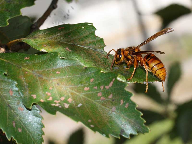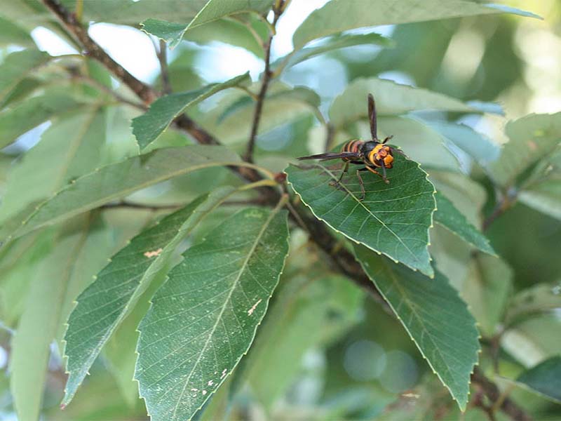 甘露は葉の上側に付着していることが多いので、集まってきたスズメバチが葉の表面を盛んに舐めている様子を観察できます。