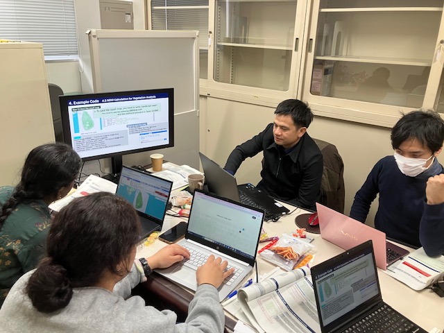 研修期間は3月2日~12日で,この期間,Pythonによる時系列データ解析・予測のためのプログラミング,Google Earth Engineを活用した環境データの取得・解析などを教えました.また,現地視察として,九州大学演習林,嘉瀬川ダム,山田堰,堀川用水,諫早湾干拓事業の視察も行いました.