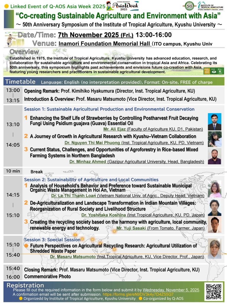 セッション1:持続的な農業生産と環境保全 ナビゲーター:濱岡 範光 准教授(九州大学熱帯農学研究センター)